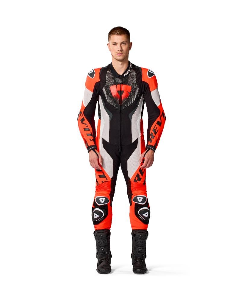 Fiecare detaliu al combinezonului Hyperspeed 3 reflecta experienta REV’IT! din competitiile de varf: protectii hard-shell cu structura dual-compound la umeri si genunchi, slidere interschimbabile la coate si genunchi si o croiala preformata, inspirata din echipamentele utilizate de pilotii profesionisti. Panourile inovatoare PWR|Weave, realizate din fire infuzate cu TPU, adauga respirabilitate, reduc greutatea si completeaza stilul agresiv specific gamei Hyperspeed.