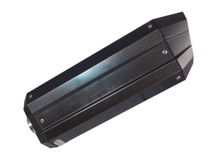 GPR's Sonic Poppy is part of the new generation of GPR exhausts, with a production process with zero environmental impact. It has dual outlets, is made of stainless steel with a carbon look finish, and has Ergal caps that are CNC-machined.