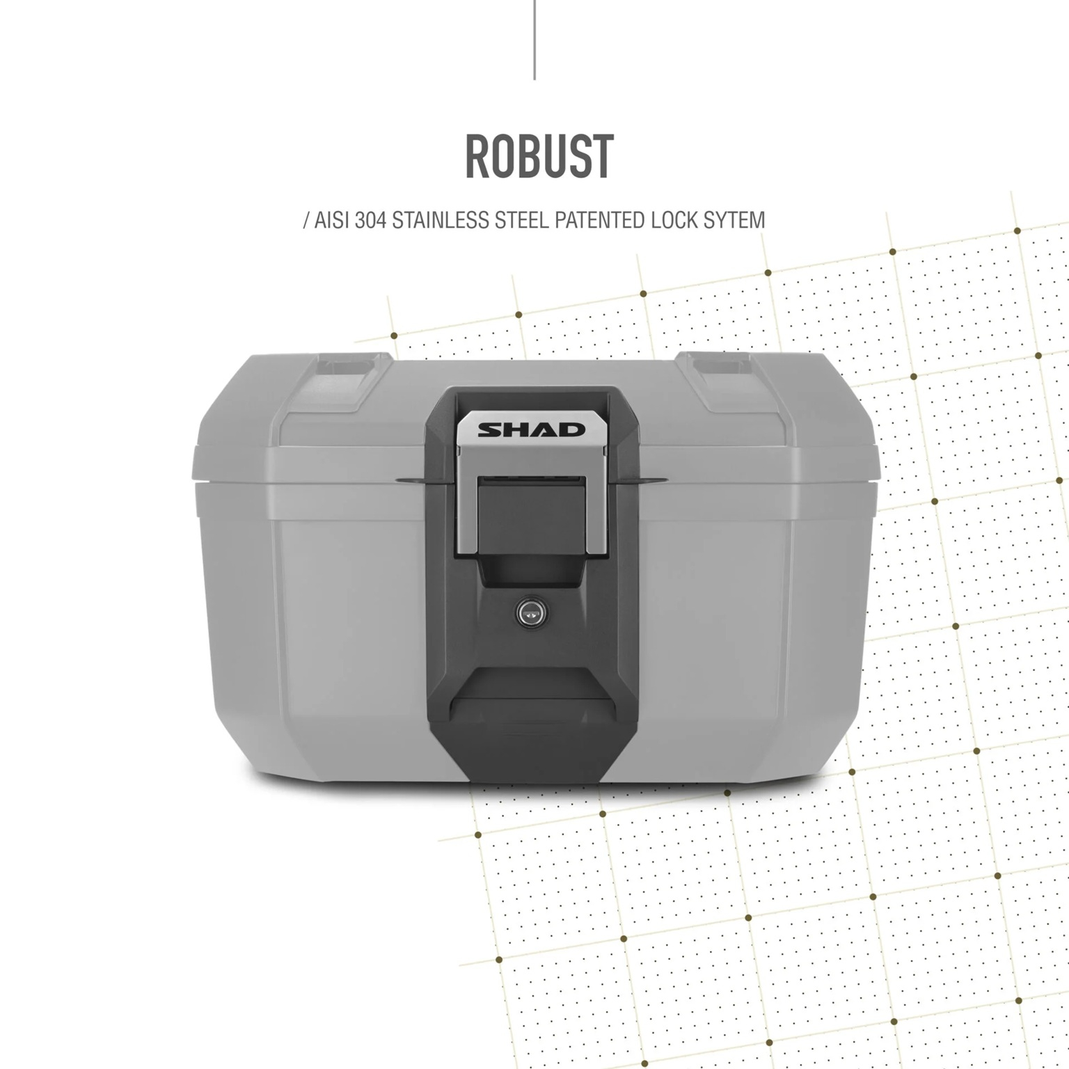 Structura etansa protejeaza continutul impotriva ploii si prafului, iar sistemul de inchidere din otel inoxidabil AISI 304, cu maner integrat, permite deschiderea, inchiderea si detasarea rapida a top case-ului. In plus, cele patru puncte de prindere superioare permit transportul bagajelor suplimentare.