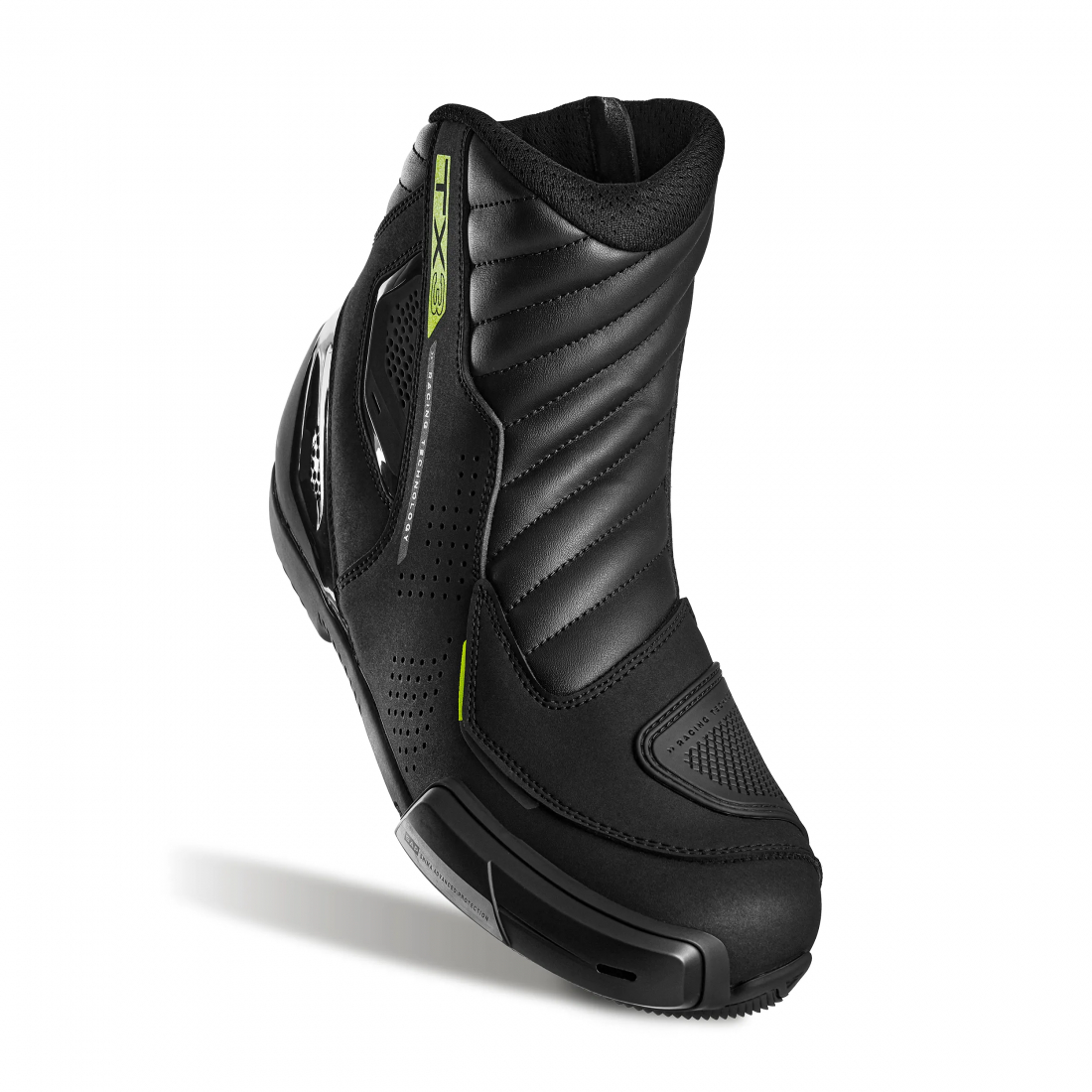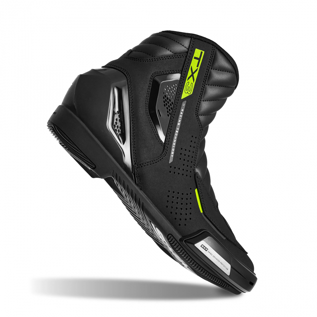 Ghetele moto SHIMA TX-3 sunt concepute pentru motociclistii sport care isi doresc un echilibru optim intre protectie ridicata si confort in utilizare. Constructia robusta ofera siguranta in timpul mersului dinamic, iar sistemul eficient de ventilatie asigura un confort optim pentru picior chiar si in timpul curselor mai lungi. Pentru protectie sporita, modelul TX-3 este echipat cu protectie SAP™ TPU in zona gleznei, care absoarbe socurile si reduce riscul de accidentare. Intariturile din zona calcaiului si a varfului, impreuna cu elementele TPU din partea din spate si cu calcaiul rigid, ofera stabilitate si sustinere excelenta piciorului in timpul utilizarii.