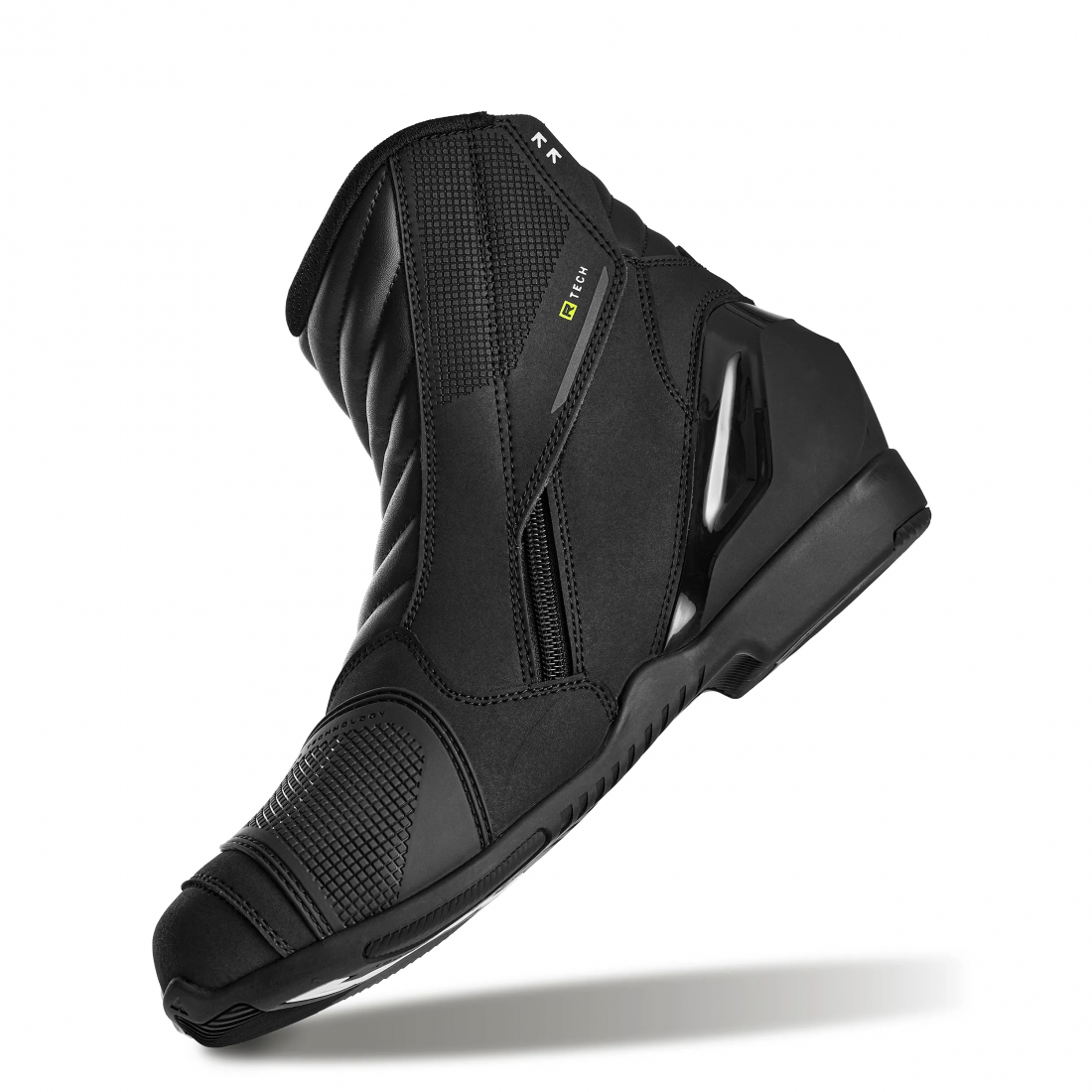Un element practic este insertia speciala din zona varfului, care faciliteaza utilizarea schimbatorului de viteze si reduce uzura materialului. Bucla de tragere ajuta la incaltarea rapida si usoara, iar talpa exterioara rezistenta, antiderapanta, asigura aderenta excelenta atat pe motocicleta, cat si la mersul pe jos.