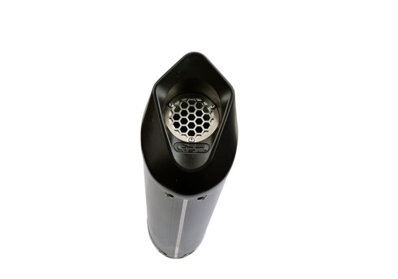 GPR's Furore Poppy silencer has a carbon look, stainless body and has been developed with a production process that produces zero impact to the environment. It has an oval shape with a diameter of 120MM, with avional bottoms produced by CNC machining.